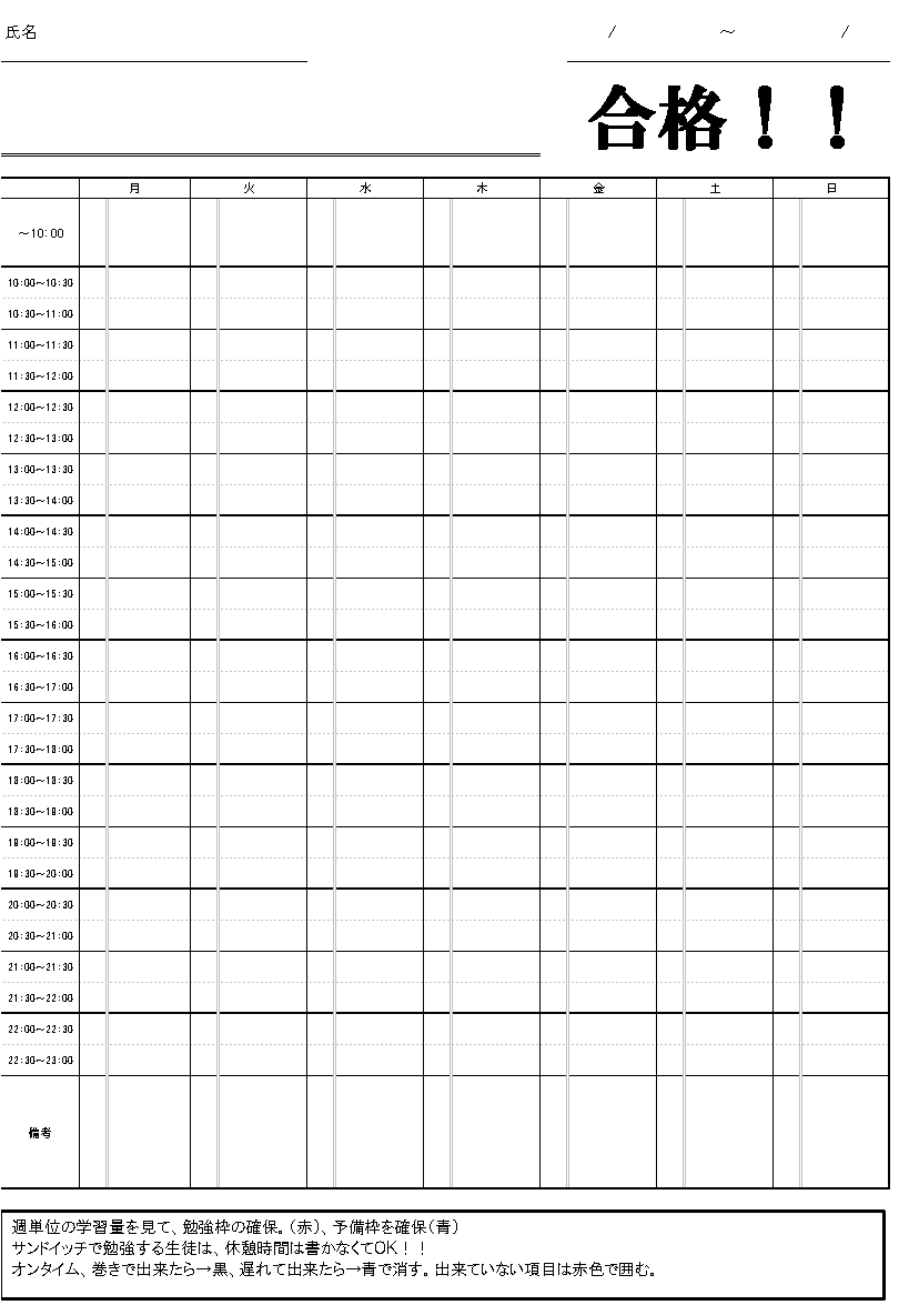 今の高校1年生にあたる生徒たちが使っていた計画表です。