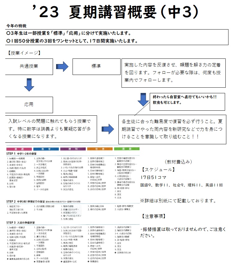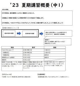 〇1年生1学期を中心とした英語、数学、国語の3教科。英数は2学期の予習内容も実施。